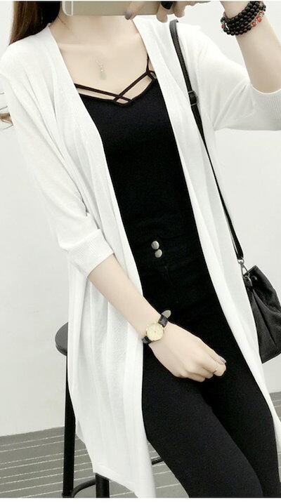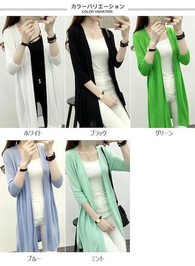 ニットカーディガン レディース 薄手 無地 ロング丈 5分袖 ボタンなし ゆったり カジュアル トップス アウター 春 夏 秋 2020春新作