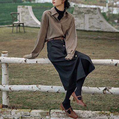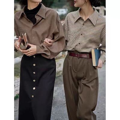 【送料無料】ブラウス シャツ?長袖?レディース レイヤード チェック ロングスリーブトップス シンプル通勤 韓国ファッション ボタン 切り替え