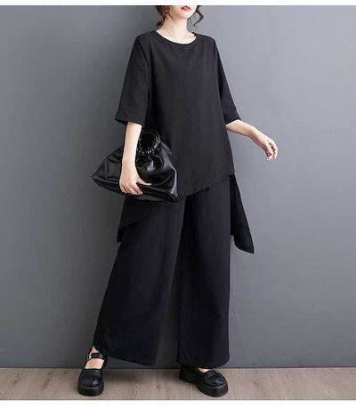 「ファットガール」 2024夏 ロンT 中華風 チュニック ロングブラウス 半袖 シャツ 体型カバー 大きいサイズ ゆったり レディース