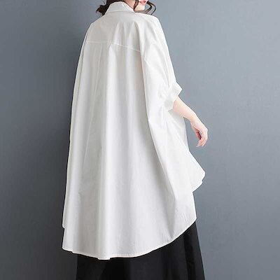 「ファットガール」 2024夏 花飾り ブラウス 前短後長 コサージュ 無地 半袖 体型カバー チュニック ロングブラウス ロンT 大きいサイズ ゆったり レディース シフォンブラウス 母の日 メガ割 | coolcoool