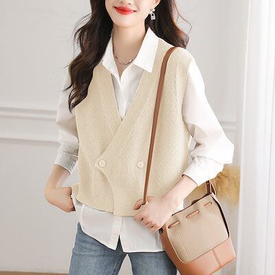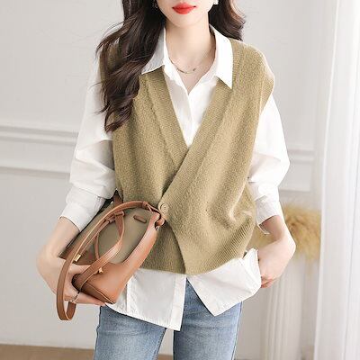 韓国ファッション 2024秋新作 ニットベスト レディース ベスト サマーニット 重ね 体型カバーゆったり シンプル ノースリーブ ベストクラシック ベスト メガ割