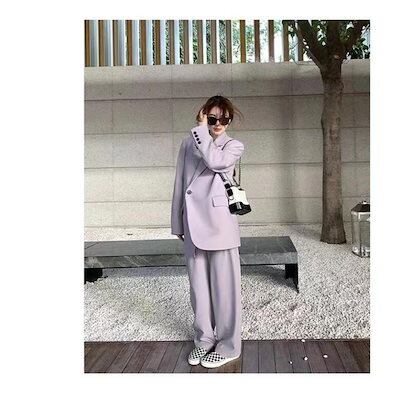秋の新デザインセンスアメリカンレトロハイストリート小香風 カジュアル ゆったりチェック柄ワイドショルダースーツ セット