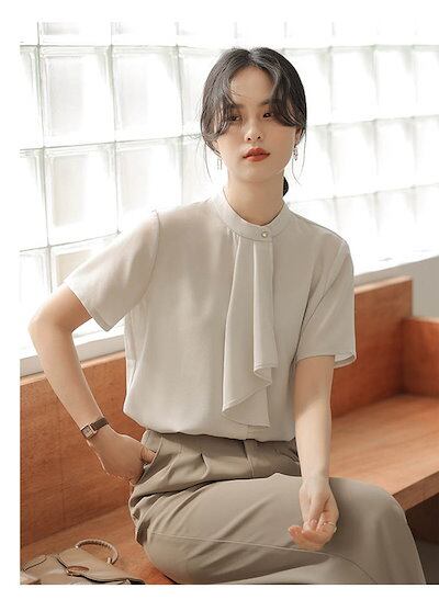 ブラウス ボウタイ レディース 半袖 スカーフタイブラウス 無地 シャツブラウス フォーマル セレモニー キレイめ トップス スーツインナー オフィス 通勤 仕事 OL おしゃれ 大人可愛い ゆった | coolcoool