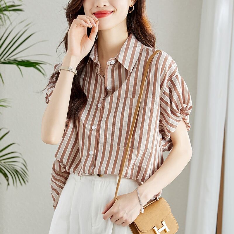 初回送料無料 ストライプ半袖上着 レーディスファション商品 おしゃれトップス 人気OL風洋服