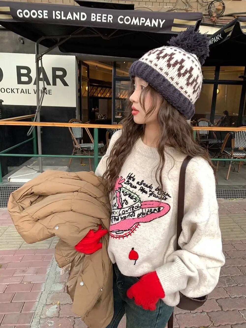 女性のジャカードレタージャンパー,earthパターンのセーター,セーター,秋冬,用途が広い,y2kの服,アニメ パーカー ジャージ y2k T240908135653_02