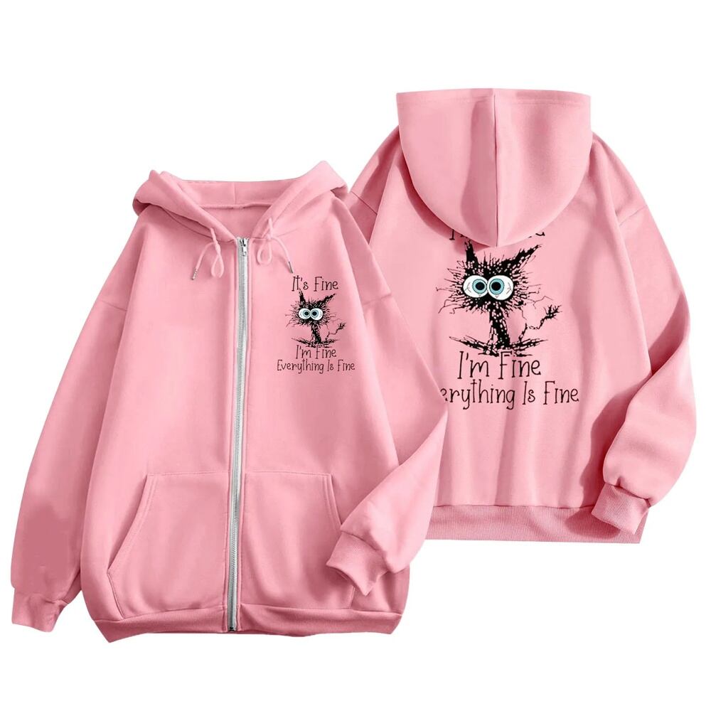 レディースカジュアルアニマル猫ジップアップカーディガン、セーター、パターン付きパーカー、レトロ、特大、y2k、すべてが素晴らしい、私は パーカー ジャージ y2k T240908135941_04 | coolcoool