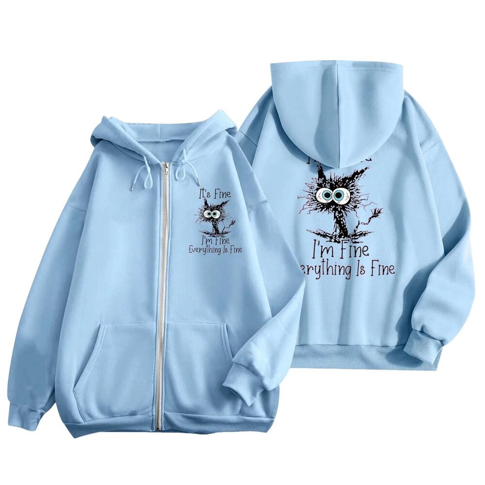 レディースカジュアルアニマル猫ジップアップカーディガン、セーター、パターン付きパーカー、レトロ、特大、y2k、すべてが素晴らしい、私は パーカー ジャージ y2k T240908135941_08 | coolcoool