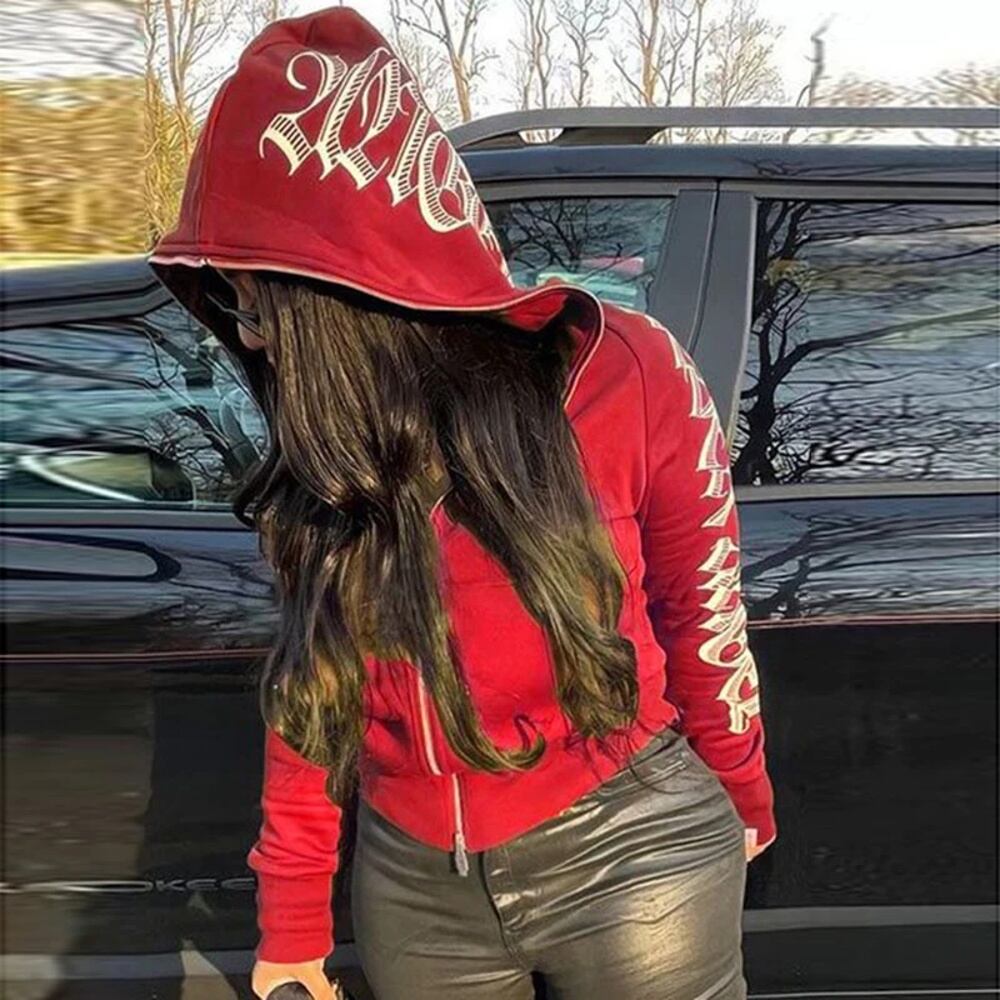 女性のゴシックパンクパーカー,ピンクの文字,ジップアップスウェットシャツ,y2kサイバージャケット,カーディガン,冬,新しい,2022 パーカー ジャージ y2k T240908140054_04 | coolcoool