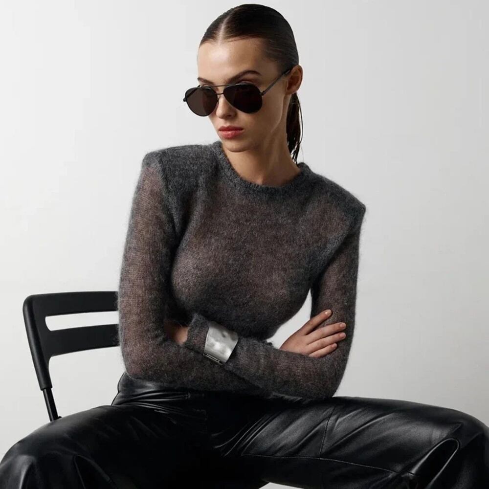 Mscsz-女性の透明なOネック長袖ニットトップ、スリムクロップドセーター、y2kストリートウェア、秋のジャンパー パーカー ジャージ y2k T240908140353_01 | coolcoool