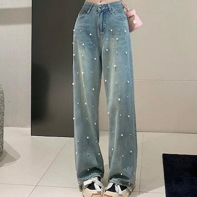 2024 春夏 パンツ デニム ジーンズ スキニー レッグ ハイウエスト 脚長効果 美脚効果 細見え 春 水色 ライトブルー ストリート系 カジュアル ズボンファッション デザインお出かけ