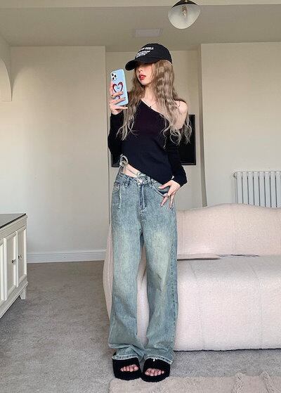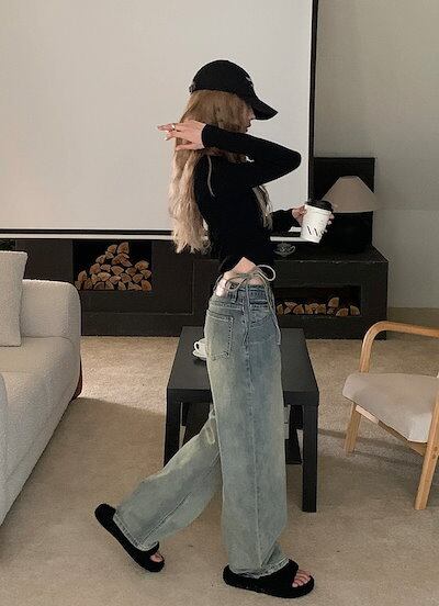 2024春夏パンツ デニム ジーンズ ロング丈 脚長効果 美脚効果 細見え 夏 カジュアル 韓国ファッション レディース お出かけ